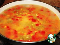Залить водой, посолить, поперчить по вкусу. Варить на слабом огне до готовности риса. |