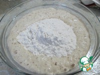 Всыпаем и вливаем соль, масло растительное и муку. Вымешиваем в чаше, затем на столе. Тесто мягкое, эластичное, податливое. |