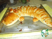 Описание: Как-то так получилось, что в один день с сыном прочитали К. Чуковского "Крокодил", сходили в музей посмотреть живого крокодила, а к вечеру изобразилось вот такое чудо-юдо. Вот такой у нас "крокодилий" день получился! Рецепт теста прост и быстр. Мне очень нравится, постоянно им пользуюсь. Надеюсь, вам пригодится.