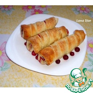 Приятного чаепития! Бананы с клюквой в слоёном тесте — кулинарный рецепт с сайта Поварёнок.ру.