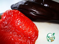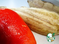Баклажаны и сладкий перец запечь в духовке при температуре 180 гр около 30-40 мин. Снять шкурку (перед этим можно положить овощи минут на 10 в целлофановый пакет). |