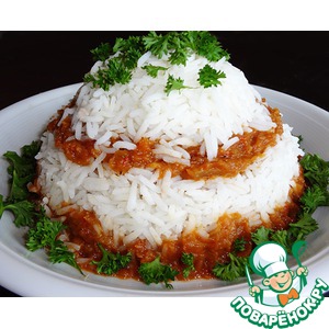 Описание: Белый рис слоями с овощной икрой украсит не только повседневный, но и праздничный стол. Сытное вегетарианское блюдо.