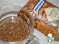 Замочить 100 г гречневой крупы в кипящей воде 100 мл на 2 часа, пока вся вода не впитается. |