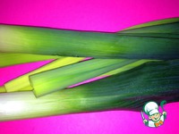 Отрезать зеленую часть лука-порея, разделить на листы, помыть под проточной водой. |
