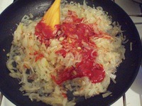 Добавить 3 ст. л. томатной пасты, все хорошо перемешать и тушить еще 10 мин. под закрытой крышкой. |