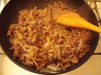 В сковороду налить немного растительного масла и обжарить на нем лук до золотистого цвета. |