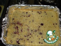 Вылить на фольгу тесто и сверху рассыпать ягоды. |