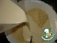 Яично-сметанную смесь добавить к сухой смеси, размешать. |