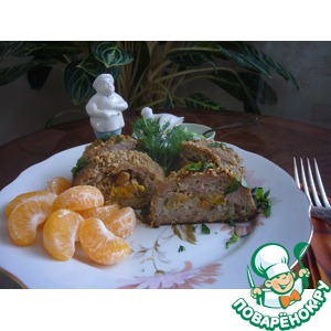 Описание: Я к вам с мясным рулетом, фаршированным рисом, изюмом и дольками мандарин. Давно хотелось попробовать что-нибудь этакое. Получилось оригинально. Мясной вкус плавно перетекает в сладковатый мандариновый, который сглажен вкусом риса и не столь ярок, как у свежего мандарина. Добровольный дегустатор, он же защитник "откушал" с удовольствием. Оригинал рецепта опубликован в серии "семь поварят" - рулеты и рулетики.