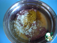В мясной фарш добавить лук, соль, перец, взбитые яйца (часть оставить для смазывания). |