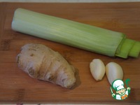 Чеснок пропустить через пресс, имбирь очистить и натереть на мелкой терке. |