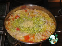 Затем всыпать порей, добавить имбирь и варить до готовности. |