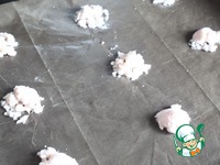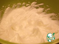 Белки взбить со щепоткой соли, добавляя постепенно оставшийся сахар (50гр). Взбить до крепких пиков. |
