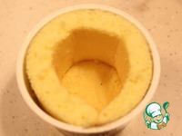 Отделить белки и желтки. Желтки взбить с половиной сахара (25гр) до образованоя белой пенистой массы. |