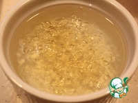 Лимонный сок подогреть с половиной сахара (50гр), но до кипения не доводить. Желатин отжать и растворить в горячем лимонном соке. |