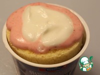 Взбитые сливки подмешать к начавшему желироваться йогурту. Аккуратными движениями подмешать взбитые белки. Разделить мусс на две части и добавить в одну из них добавить клубничное пюре. |