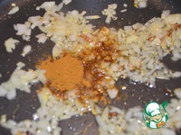 Добавить карри и 1 столовую ложку воды. Перемешать и прогревать еще 3 минуты |