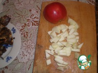К луку добавляем мелко нарезанное яблоко. Обжариваем до мягкости. |