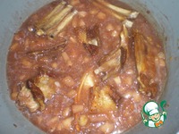 Доводим до кипения. Если соус густой подливаем горячую воду. Кладем наши ребрышки в соус и оставляем 2-3мин. |