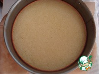 В смазанную маслом разъемную форму диаметром 26 см вылить немного теста (примерно 2 половника). |