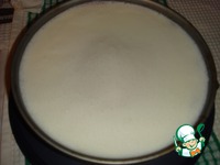 Остывшие коржи промазать кремом. Лучше это делать, поставив бортик от разъемной формы вокруг коржей, так как крем сначала слегка жидковатый. |