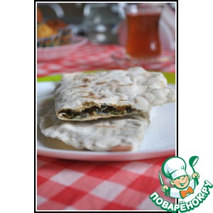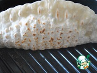 Обжариваем на сухой, раскаленной сковородке, без масла. С двух сторон. Я обычно жарю на тефлоновой сковородке, сегодня просто захотелось чебурек с полосками:) |