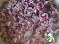 Для начинки нарезаем кубиками лук, шпинат хорошо промываем и тоже нарезаем. Обжариваем лук на растительном масле около 3 минут до прозрачности. |