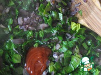 Добавляем шпинат и ложку томатной пасты. Перемешиваем. |