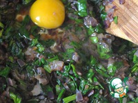 Добавляем яйцо и снимаем с огня сковородку. Перемешиваем. Начинка готова! |