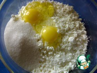Смешать творог, яйца, соль, сахар и муку. |