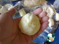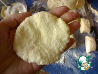Мокрыми руками берем кусочек теста и делаем из него лепешку |