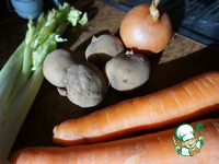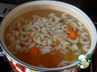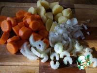 В бульон отправляем нарезанные овощи. Варим до полуготовности (мин 15, примерно) |