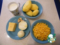 Готовим все ингредиенты: картофель, кукуруза, чеснок, сливки, лук, сыр. |