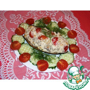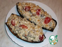 Соединить баклажаны со смесью кускуса и гороха. Добавить четвертинки помидор черри и кедровые орешки. Осторожно хорошо перемешать. |