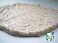 Подошедшее тесто руками, смазанными маслом, выложить на рабочую поверхность и придать форму прямоугольника. |
