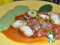 А «стартовать» я хочу с потрясающих фаршированных кальмарчиков в томатном соусе на итальянский манер и соусом из шпината. Однажды хотела пристроить небольшие «тушки» - начиталась рецептов и нафантазировала данное блюдо =) Попробуем?