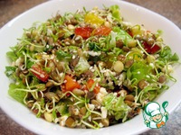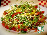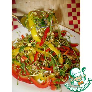 Салат "Солнце". Красный и жёлтый болгарский перец, укроп, петрушка, проросшие ростки чечевицы, посолила чуть и подс. масло... такая свежесть мммм... |