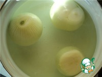 Луковицы аккуратно очистим, достаточно высоко срежем корневую часть, опустим в кипящую подсоленую воду и поварим примерно 5 минут. |