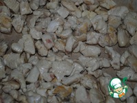 На той же сковороде, где жарили лук обжариваем куринную грудку до белого цвета. |