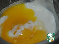 Смешиваем сметану, 2 желтка и мускатный орех. |