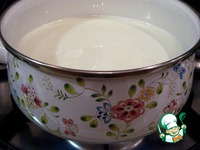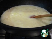 Влейте молоко и воду, доведите до кипения и варите на маленьком огне минут 10, помешивая, следите, чтобы молоко не "сбежало". |