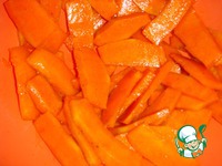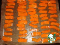 Выложить подготовленную тыкву на противень. покрытый бумагой для выпечки. |