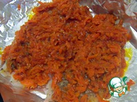 Выложить сверху тушеную морковь. |