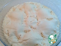 Аккуратно кладем тесто сверху. Прокалываем вилкой тесто так, чтобы не попасть на желток. Внимание!!! не прокалывать по желтку. |