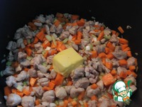 Добавить сливочное масло, перемешивая все хорошо, чтобы овощи и мясо пропитались маслом. |