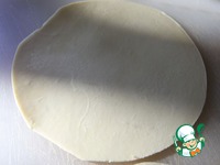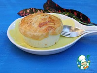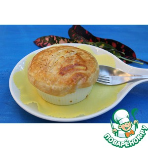 Из слоеного теста вырезать круги, диаметром на 2 см больше, чем ваши формы-горшочки. Это удобно сделать приложив саму форму-горшочек. |