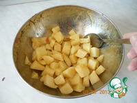 Картофель положить в ту же чашу, где перемешивали рыбу, добавить хмели-сунели и соль, перемешать. |