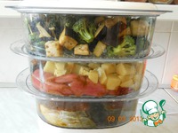 Выложить баклажан и брокколи в верхний ярус пароварки. |