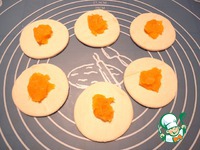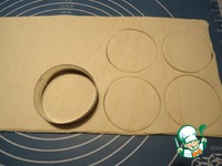 Тесто разморозить, развернуть. Толщина теста должна быть примерно 4 мм, если у готового теста толщина больше, то необходимо тесто раскатать. |