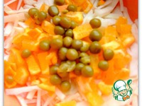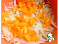 Очищаем и маленькими кубиками нарезаем апельсин... |